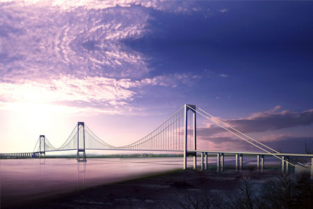 Taizhou Yangtse River Road Bridge is the first suspension bridge of 3 tower, 2 span with more than 1…
