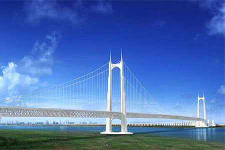 Guangdong Humen Second Bridge is a twin-tower single-span steel box girder suspension bridge with a …