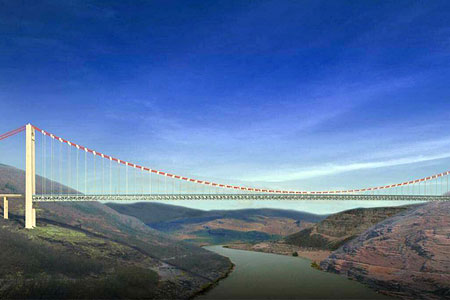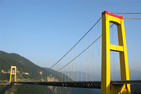 Hubei Sidu River Bridge is called the highest suspension bridge in the world with 1100m long and mai…