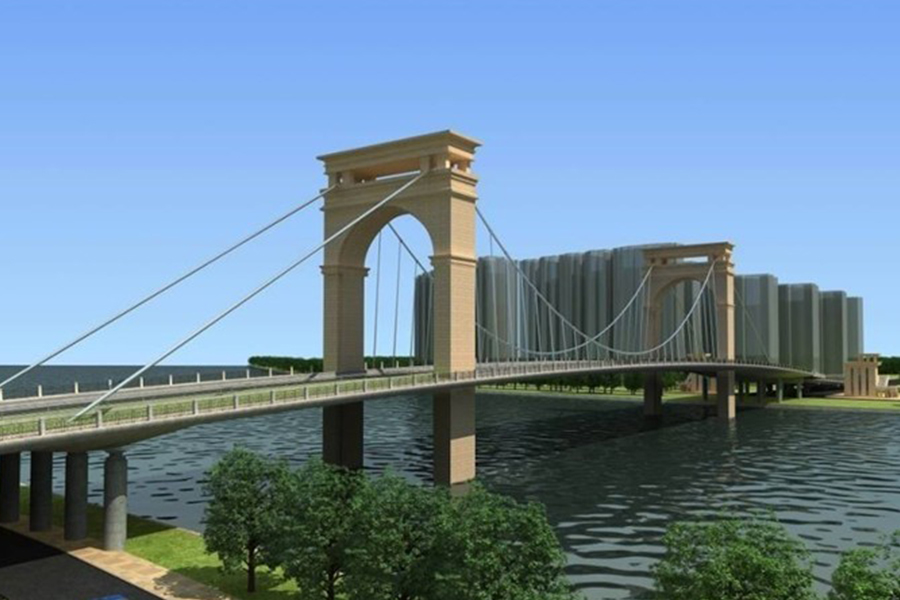 南屏二橋?yàn)殡p塔自錨式懸索橋,主跨150米。...