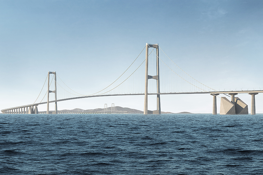深中通道伶仃洋大橋?yàn)殡p塔三跨懸索橋,主跨1666米。...