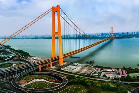 武漢鸚鵡洲長(zhǎng)江大橋是武漢第八座長(zhǎng)江大橋,主橋長(zhǎng)2100米,橋面為雙向8車道...