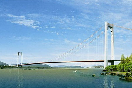 江津中渡長(zhǎng)江大橋,全長(zhǎng)1738米,主橋橋型為懸索橋,...