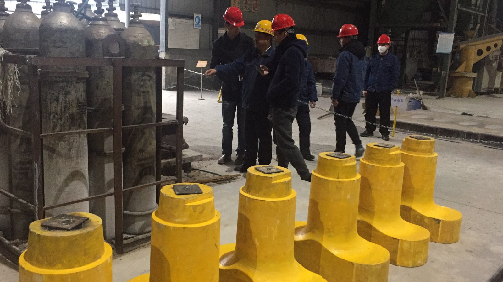 審核過程中,認證老師分別對公司樂石鑄造有關原材料管理、模型制作、澆筑系統(tǒng)、熱處理過程、成品尺寸檢驗以及理化性能試驗進行了認證,提出了多項改進措施,如原材料堆放分區(qū)標識,設備維修保養(yǎng)記錄等內(nèi)容。這次審核,發(fā)現(xiàn)了公司鑄鋼件生產(chǎn)的不足之處,為提高公司索夾、錨杯等鑄鋼件生產(chǎn)質(zhì)量提供了寶貴意見,為公司產(chǎn)品達到國內(nèi)先進、國際一流水平奠定基礎,讓公司產(chǎn)品的國際化道路越走越寬。