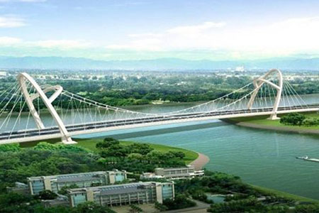 吉林霧凇大橋是雙塔自錨式混凝土懸索橋,全長(zhǎng)991米、寬32米,自錨式混凝土...