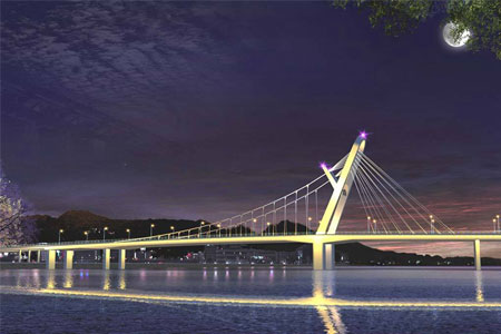 卡塔爾魯賽爾城第8、9號(hào)橋是半自錨式懸索橋,總長(zhǎng)度分別為204m和186m。...
