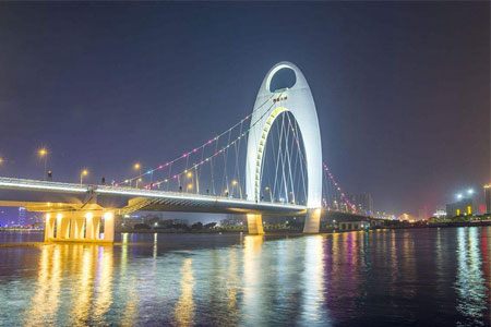 獵德大橋主橋?yàn)楠?dú)塔雙索面空間自錨式懸索橋,采用47米+167米+219米+...