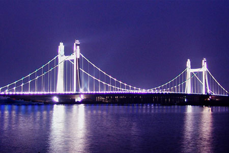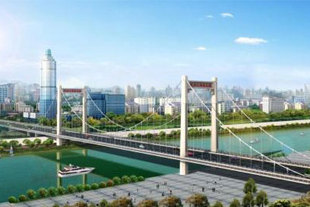 南昌洪都大橋,是單纜單索面雙獨柱自錨式懸索橋;跨越贛江北支的橋命名為英雄大橋,是...